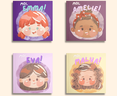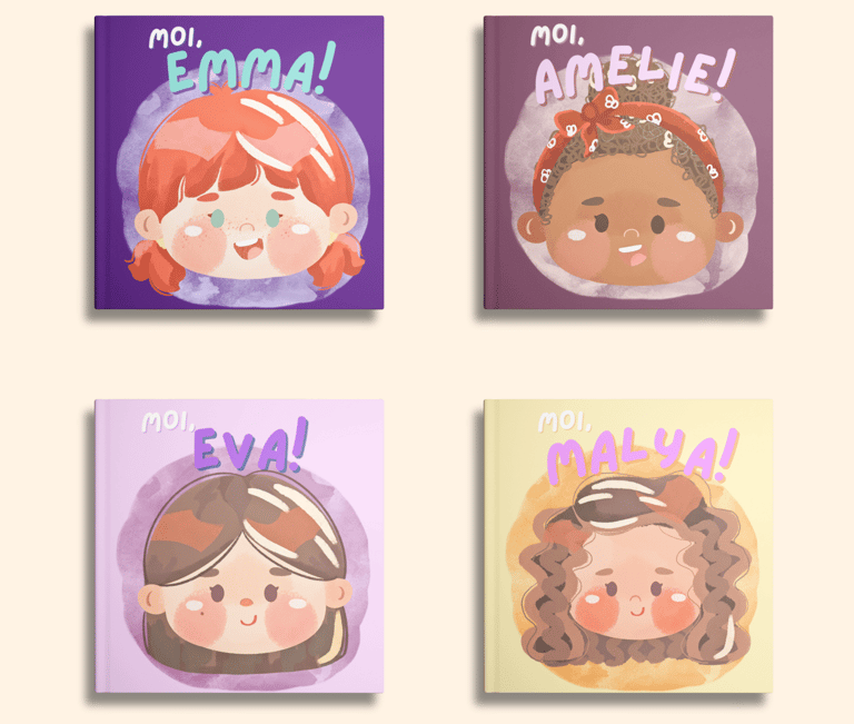 L’histoire est déjà écrite, mais chaque livre devient unique grâce aux illustrations personnalisées de votre enfant. À partir des photos que vous nous envoyez et d’une brève description (prénom, passions, objet préféré…), nous créons un personnage sur mesure qui ressemble trait pour trait à votre enfant.