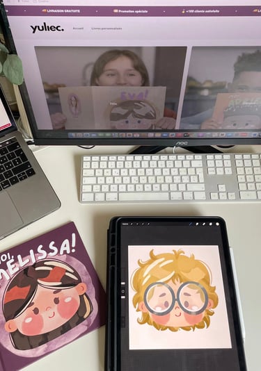 L’histoire est déjà écrite, mais chaque livre devient unique grâce aux illustrations personnalisées de votre enfant. À partir des photos que vous nous envoyez et d’une brève description (prénom, passions, objet préféré…), nous créons un personnage sur mesure qui ressemble trait pour trait à votre enfant.