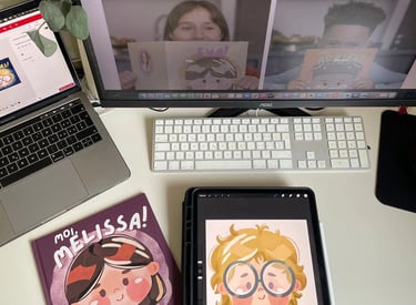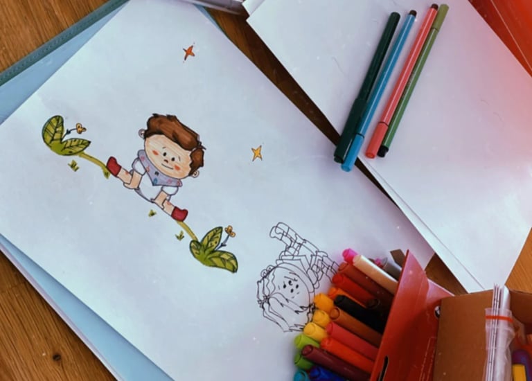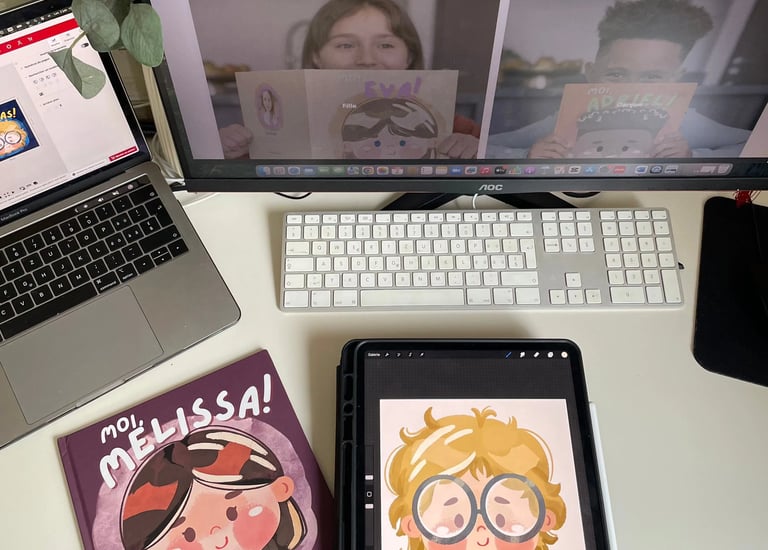 Avec le temps, j’ai découvert le monde merveilleux de l’illustration numérique. Mes croquis ont quitté les feuilles pour prendre vie sur une tablette. J’ai commencé à représenter tout ce qui rendait mon fils unique : ses gestes, ses passions, ses objets préférés… jusqu’à créer un véritable livre illustré.